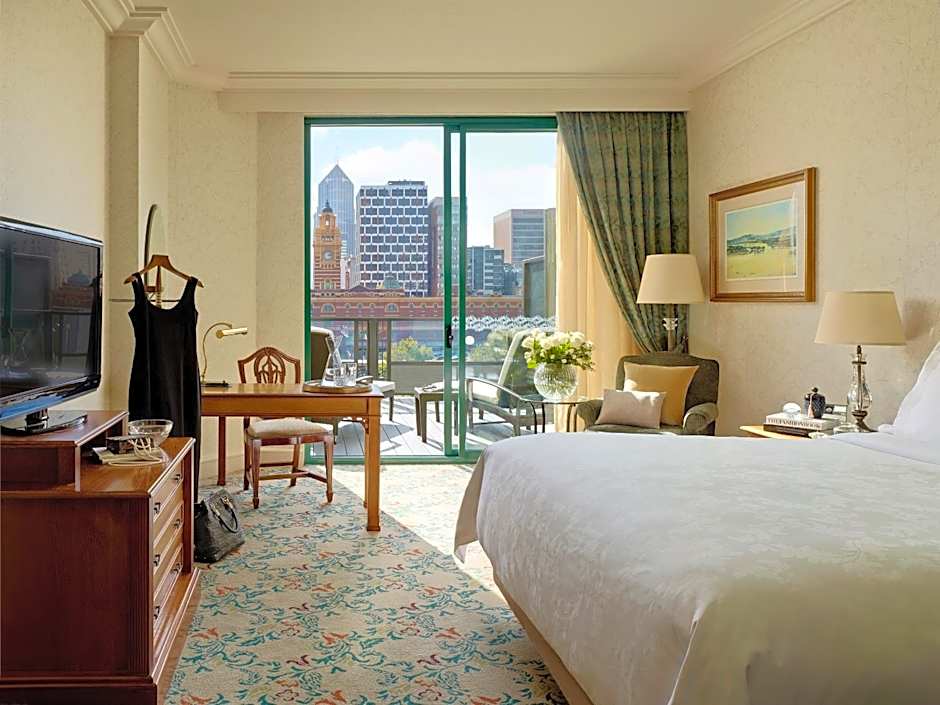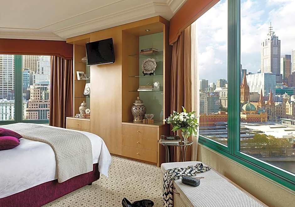 This deluxe room features a spacious balcony with views of the Melbourne city skyline. It offers sophisticated interiors and well planned amenities. The bathroom comes with a separate shower and bath.